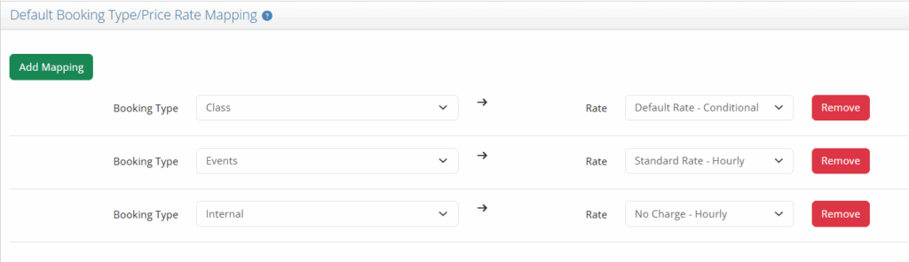 You can add new links between Booking Types & Rates to your customers, by selecting ‘Add Mapping’.