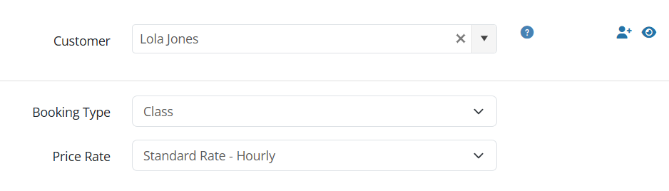 Booking Type, Price Rate, and Tax Rate (where applicable), will now be displayed as the format below when creating or editing a booking.